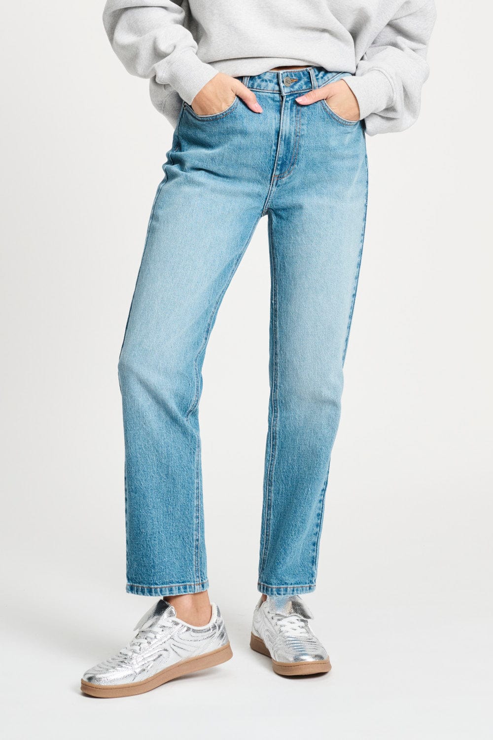 Coupe : Ce jean a une taille mi-basse et des jambes droites, avec une cheville légèrement fuselée. Le mannequin sur la photo mesure 1,72 m et porte une taille 36.