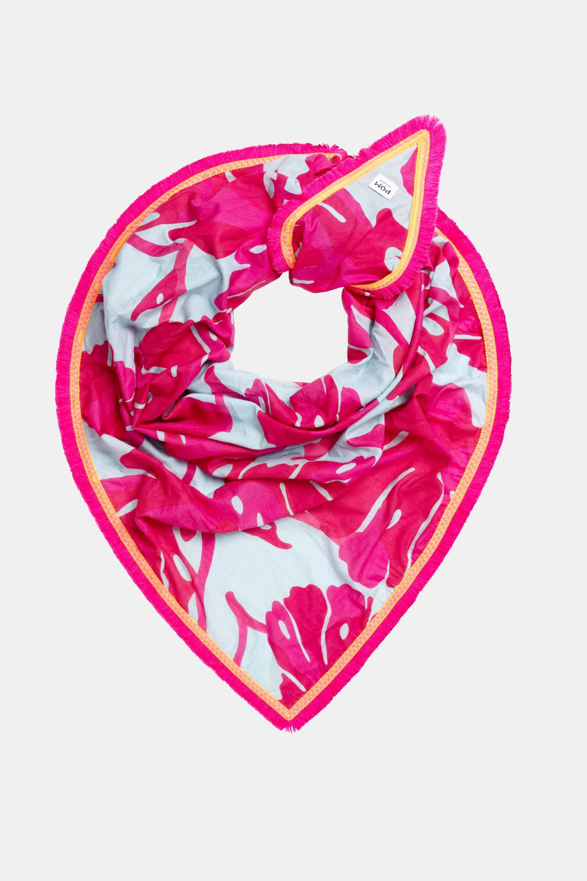 • echarpe triangulaire bleu clair avec imprimé floral rose